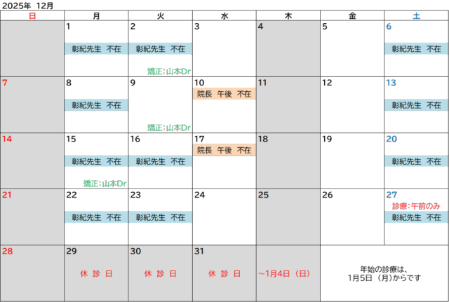 12/28(日)から翌年1/4(日)、年末年始休暇