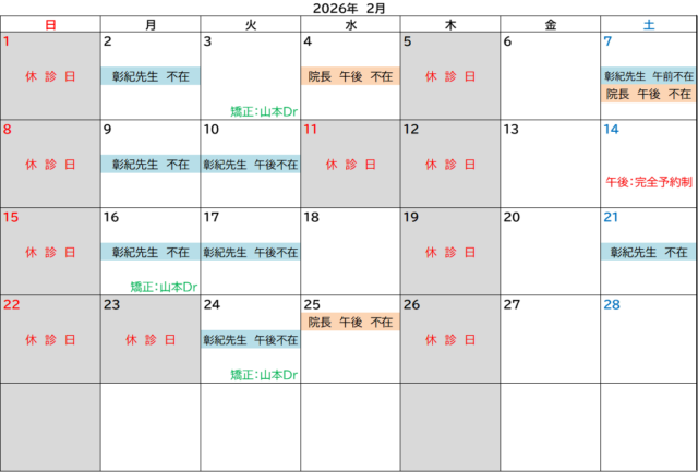 2/4(水)、7日(土)、25日(水) 午前のみ診察