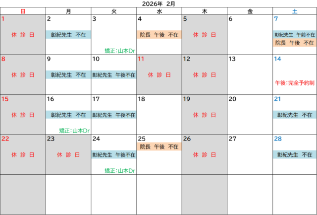 2月診療日のご案内