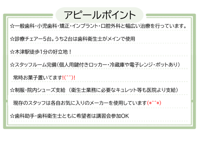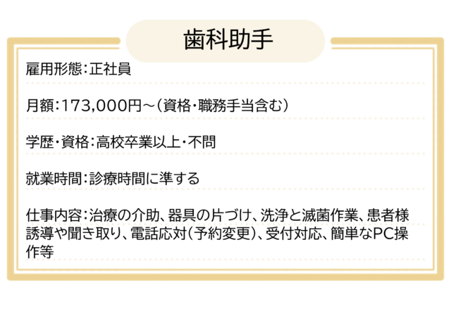 - 有給休暇、各種保険は法定通り(健康保険は歯科医師国保加入)