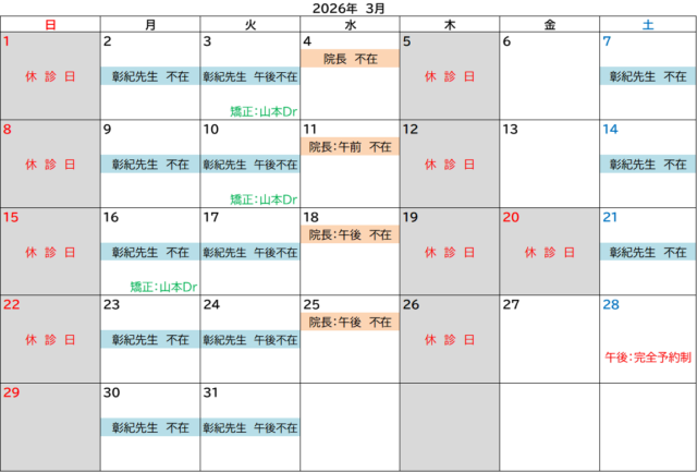 3/11日(水)、18日(水)、25日(水) 午前のみ診察