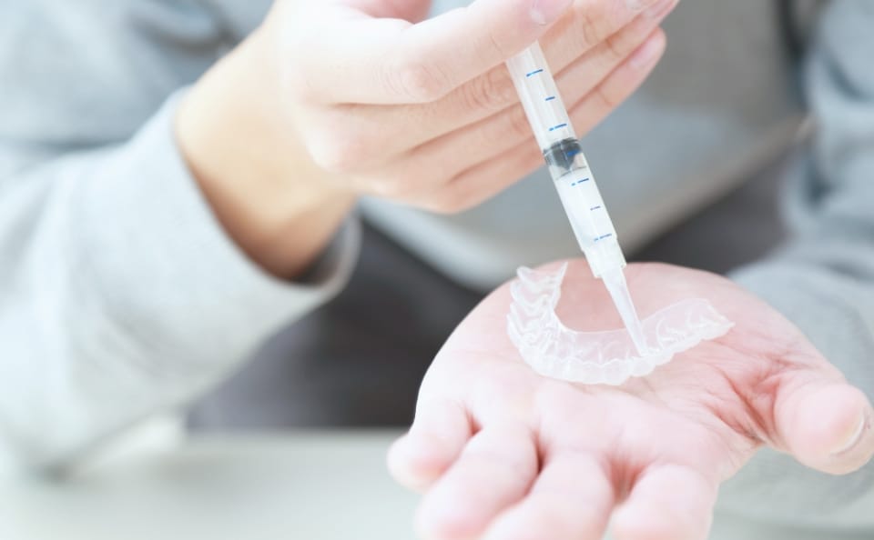 当院取り扱いのホームホワイトニングで処置を行います。歯の表面や内部の色素を分解・除去し、自然な白さを引き出します。施術中は快適さに配慮しながら進め、希望の明るさに近づけます。
